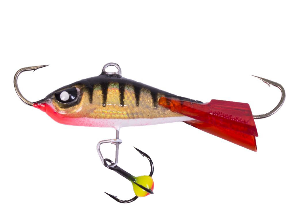 Хвостовое оперение балансира может быть красным или прозрачным, изготовлено из морозостойкого пластика и приклеено к телу приманки суперпрочным клеем.