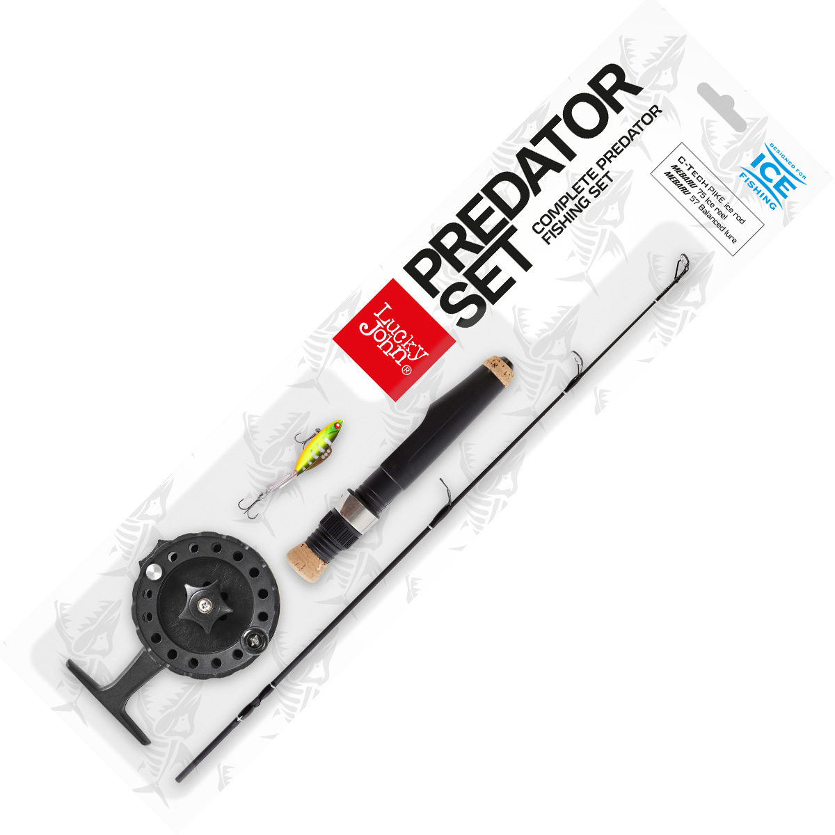 К удилищу прилагается современная проводочная катушка Lucky John MEBARU с диаметром шпули 7,5 см. Катушка оборудована фрикционным тормозом и стопором обратного хода. Высокая ножка катушки позволяет комфортно ловить даже в перчатках. На катушку намотана высококачественная монофильная леска диаметром 0,265мм.